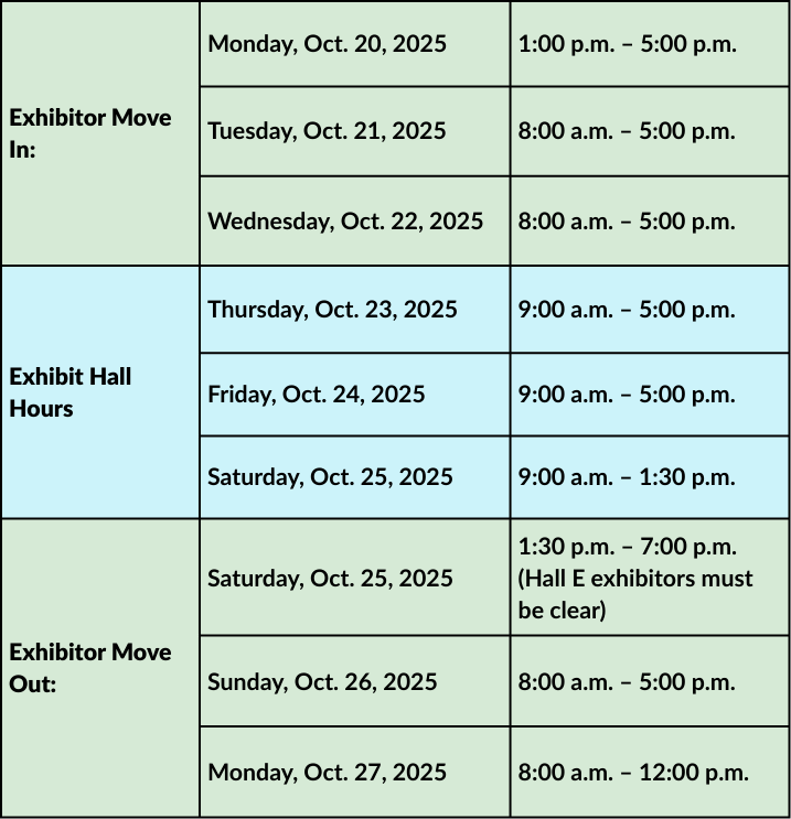 Ensure you register prior to arriving onsite to avoid lines when checking in. Housing links will be available in your registration confirmation. Note – the housing deadline is Oct. 3 to secure discounted rooms. Registration and housing information are shared with the main company contact by our partner, Maritz. Please reach out to adaexh@maritz.com if you have any questions.